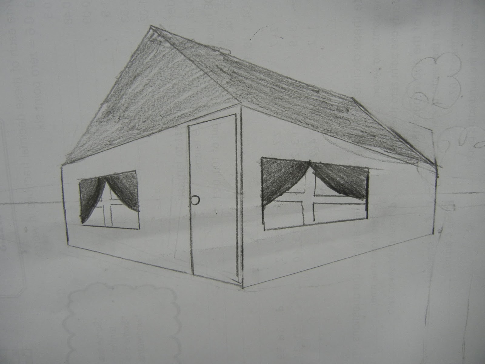 I draw a house using a 3 point perspective method.